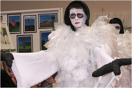 Plus près de chez nous, à l’école de Te Puna, les élèves de 10 à 12 ans ont fait leur propre spectacle d’œuvres d’art portables. Pendant un trimestre chaque élève a conçu son projet, résolu les problèmes techniques, cherché les matériaux nécessaires pour le thème choisi – recyclés pour la plupart – et enfin a créé son œuvre.