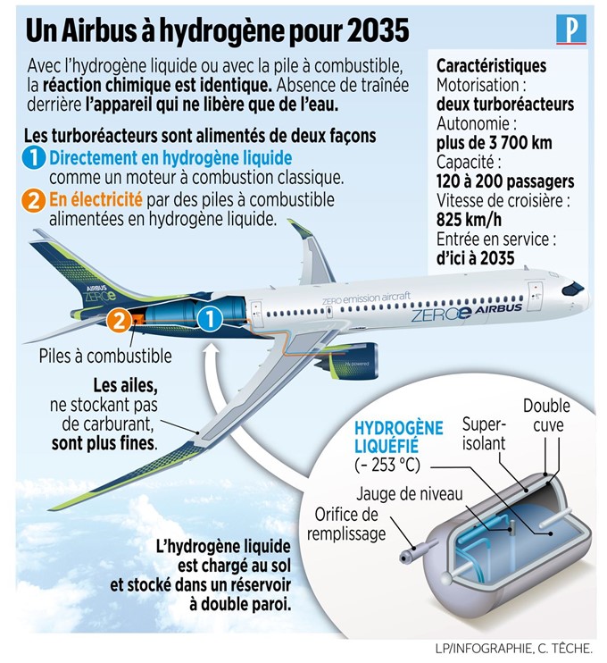 Le PDG d’Airbus nous dévoile « trois concepts » d’avion à hydrogène. On fait le point sur cette révolution en marche, qui concerne aussi les trains ou encore les voitures. L’avionneur ambitionne de commercialiser en 2035 le premier appareil zéro émission.