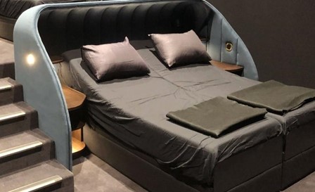 Mais, dans cette nouvelle salle, on a installé des fauteuils-lits dans les rangées devant, près de l’écran…..