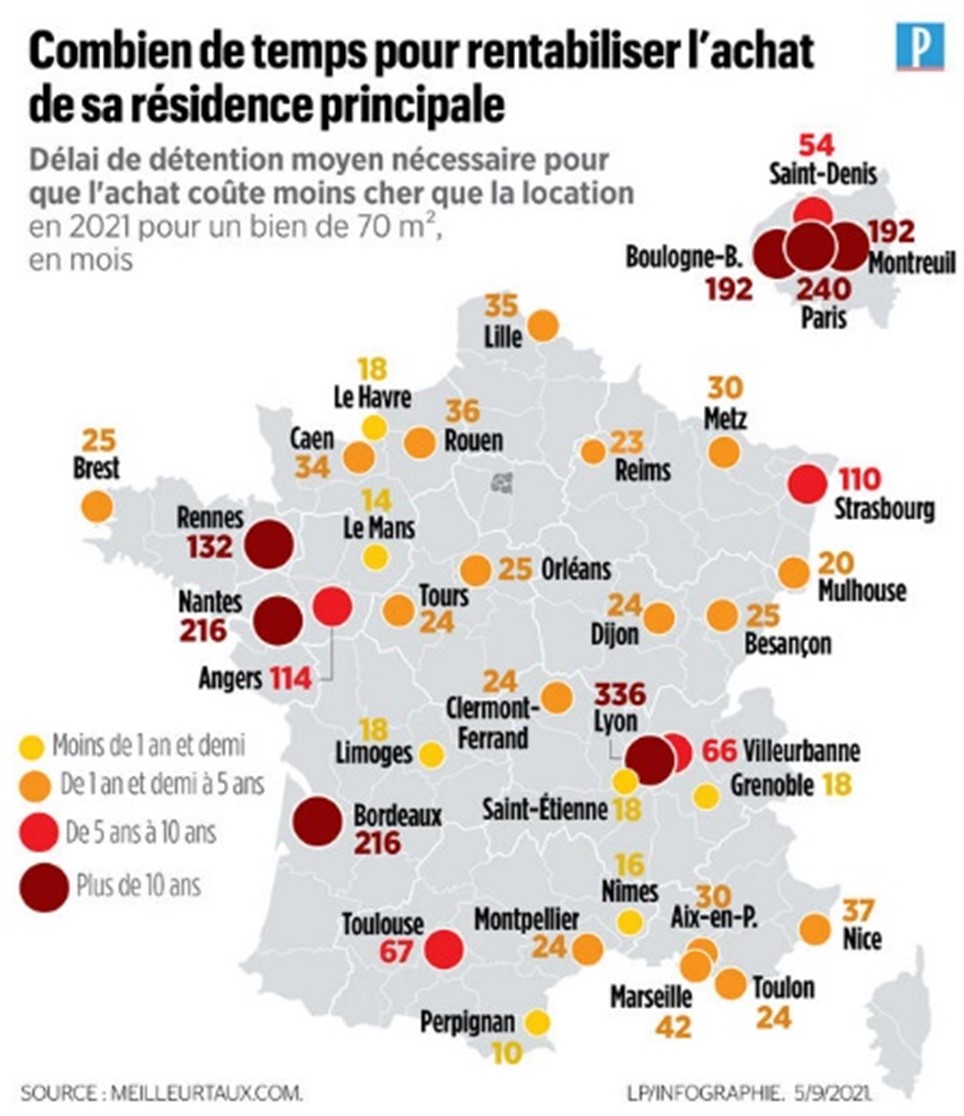 Dans 22 des 36 plus grandes communes de France, il faut ainsi moins de trois ans aux néopropriétaires pour que leur choix de ne pas être resté locataire soit gagnant.