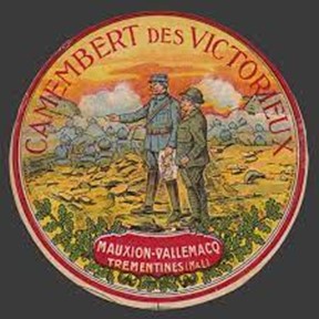 À cette époque, le camembert n’est pas encore le plus célèbre des fromages français. Mais dès le début de la guerre, les étiquettes des boîtes en bois se décorent de thèmes nationalistes prédisant une victoire complète et rapide.